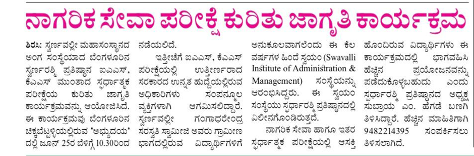 ನಾಗರೀಕ ಸೇವಾ ಪರೀಕ್ಷೆ ಕುರಿತು ಜಾಗೃತಿ ಕಾರ್ಯಕ್ರಮ